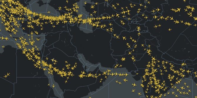 - Large parts of Middle East airspace remain closed, including Iran, Iraq, Kuwait, and Syria.