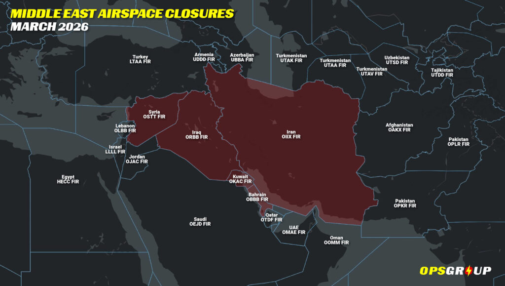 There have been no airspace reopenings since our last update – the overall picture remains unchanged, with Iran, Iraq, Kuwait and Syria still closed and Gulf FIRs operating under strict restrictions.