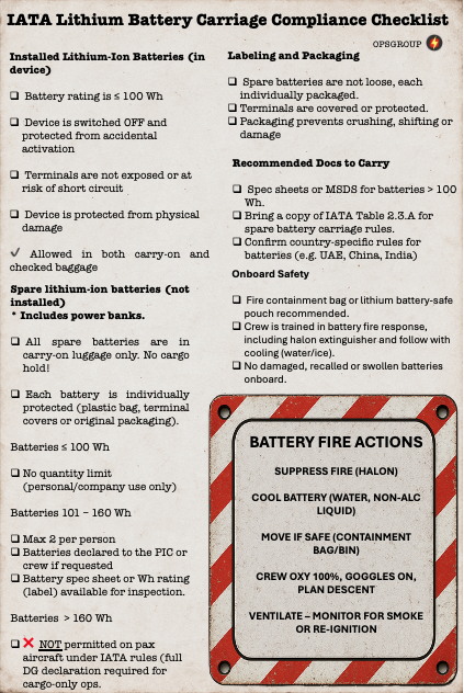 Three million pages of DG-related dread building? Worry not. We’ve put together a quick checklist of requirements/suggestions for Part 91 operators to help them stay out of trouble when carrying batteries outside of the US: