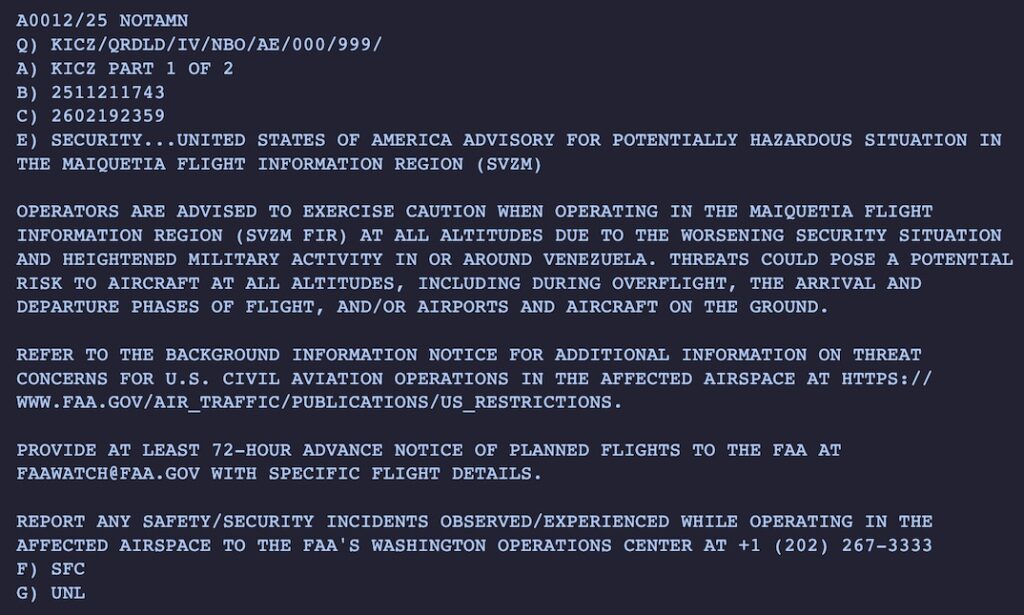 - More: “THIS NOTAM IS AN EMERGENCY ORDER” – FAA on Venezuela