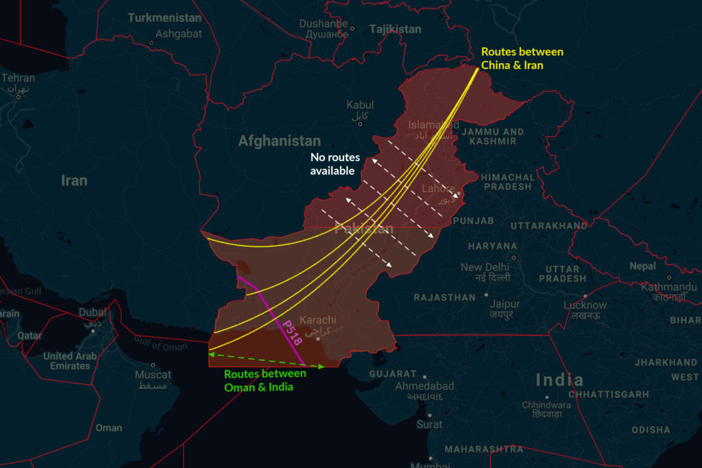 At that time, Pakistan also published a bunch of Notams saying that they would allow eastbound overflights on a few airways which connect Oman and India through Pakistan’s airspace over the Gulf of Oman, but initially India did not authorise the use of these.