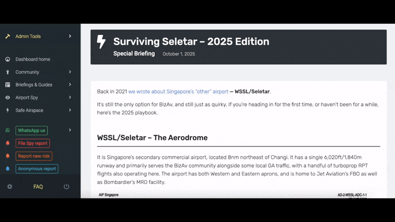 If you’re flying a bizjet into Singapore, WSSL/Seletar is your only option. Our recent guide covers the key survival tips – from managing the visual-only arrivals to dealing with limited parking and other quirks that can catch you out. OPSGROUP members can access the guide via your members dashboard here.
